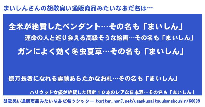 | 意味不明あだ名 | 『自称まいしん』『まいしんフォーエバー』 |