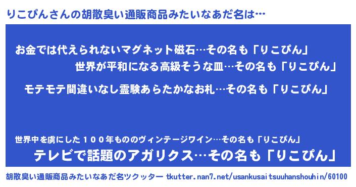 | 意味不明あだ名 | 『ペロリンりこぴん』『自称りこぴん』 |