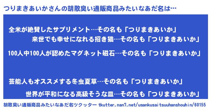 | 欧米人風あだ名 | 『トリンドルつりまきあいか』 |