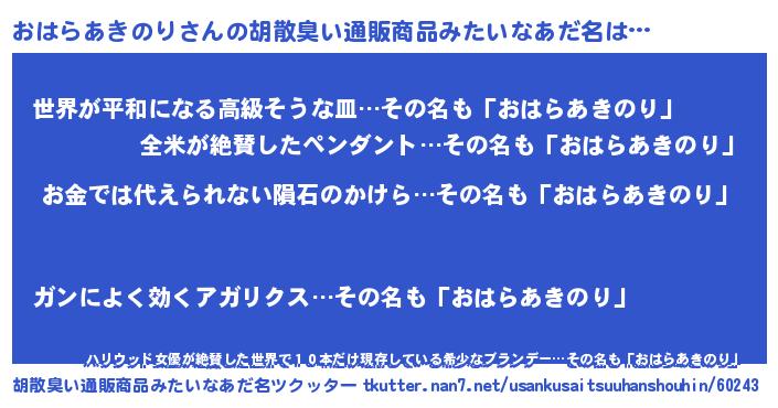 | 料理風あだ名 | 『おはらあきのりごはん』 |