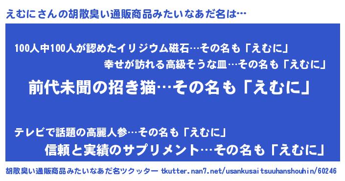 | ヘコむあだ名 | 『えむに(笑)』『えむ太郎』『つくし』 |