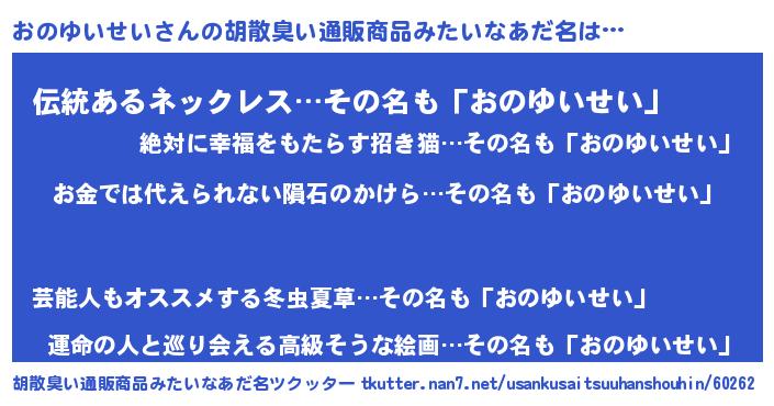 | ヘコむあだ名 | 『おのっちょ』『なまこ酢』 |