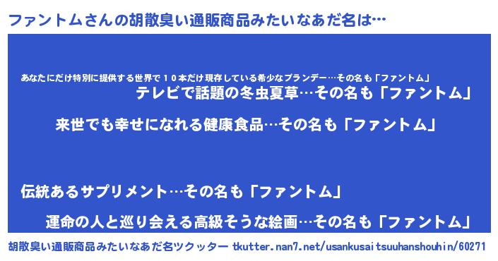 | ヘコむあだ名 | 『ファントム(笑)』『レバニラ』 |