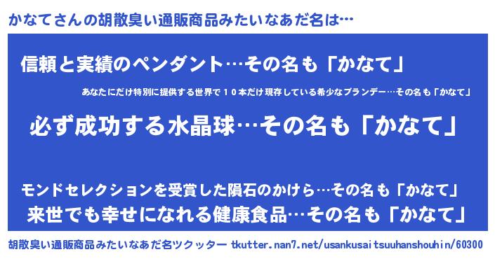 | 意味不明あだ名 | 『ペロリンかなて』『永久保存かなて』 |