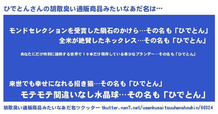 | 意味不明あだ名 | 『住所不定無職ひでとん(86歳)』 |