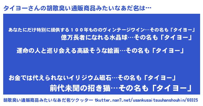 | 欧米人風あだ名 | 『タイヨークリステル』 |