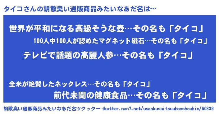 | 意味不明あだ名 | 『自称タイコ』『タイコフォーエバー』 |