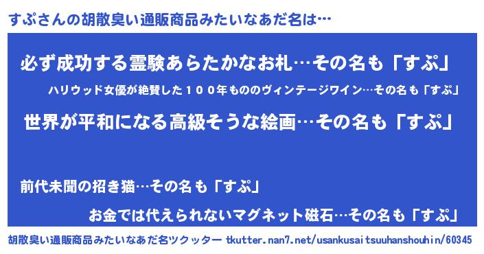 | ヘコむあだ名 | 『豆乳』『すぷにゅー』『すぷ(苦笑)』 |