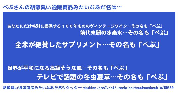 | ヘコむあだ名 | 『ぺぷ太郎』『ぺぷ(笑)』『なまこ酢』 |