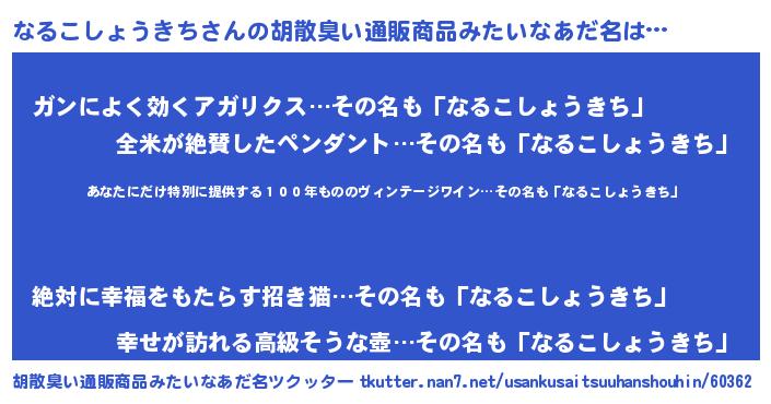 | 男性向けラノベタイトル風あだ名 | 『この素晴らしい世界になるこしょうきちを!』 |