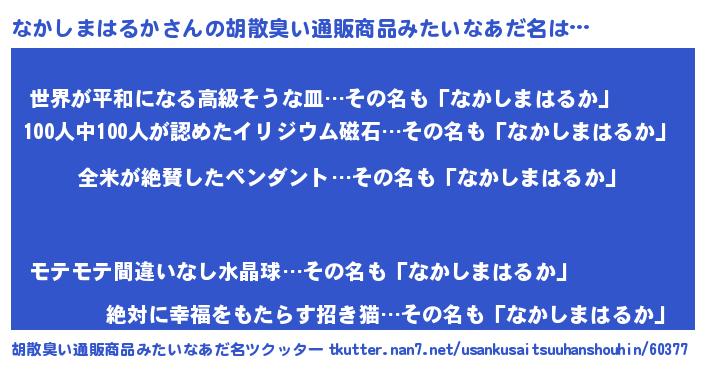 | 意味不明あだ名 | 『とにかく怪しいなかしまはるか』 |