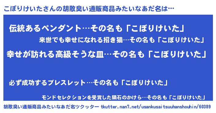 | ヒーロー風カッコイイあだ名 | 『ウルトラこぼりけいたマン』 |