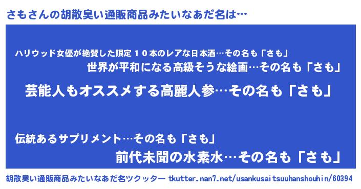 | ヘコむあだ名 | 『さも(笑)』『つくし』『さもぷりん』 |