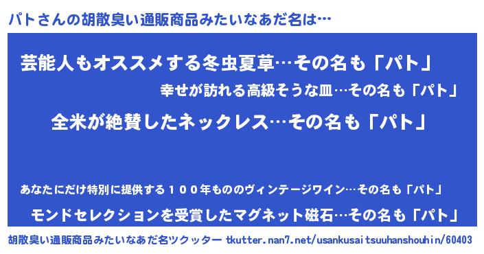 | ポケモン風あだ名 | 『ヒパト』『パトセウス』『パトダネ』 |