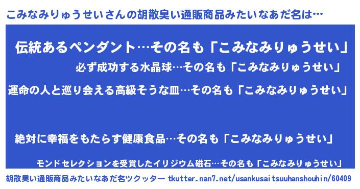 | 肩書あだ名 | 『こみなみりゅうせい国家主席』 |