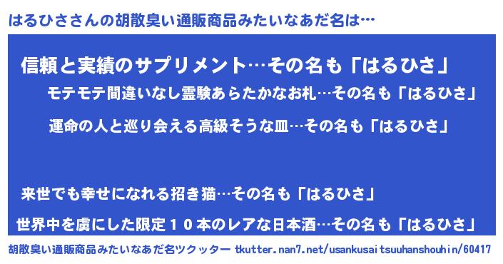 | ポケモン風あだ名 | 『ハルヒダネ』『ヒハルヒサ』 |