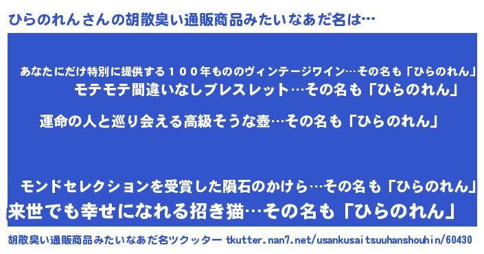 | ヘコむあだ名 | 『レバニラ』『ひらのれん(震え声)』 |