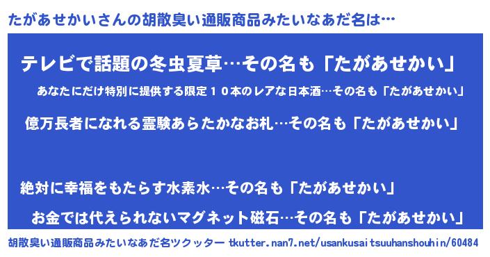 | 欧米人風あだ名 | 『トリンドルたがあせかい』 |