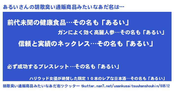 | 意味不明あだ名 | 『とにかく怪しいあるい』『自称あるい』 |