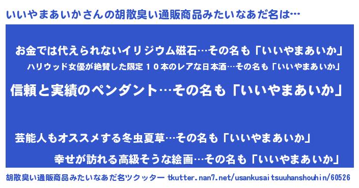 | 意味不明あだ名 | 『とにかく怪しいいいやまあいか』 |