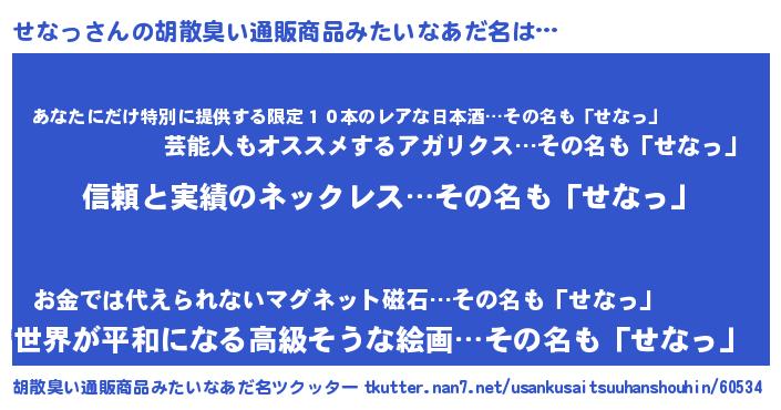 | 意味不明あだ名 | 『とにかく怪しいせなっ』『自称せなっ』 |
