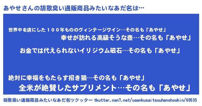 | ポケモン風あだ名 | 『アックウザ』『アヤゴンZ』 |