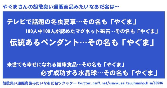 | 意味不明あだ名 | 『とにかく怪しいやぐま』『自称やぐま』 |