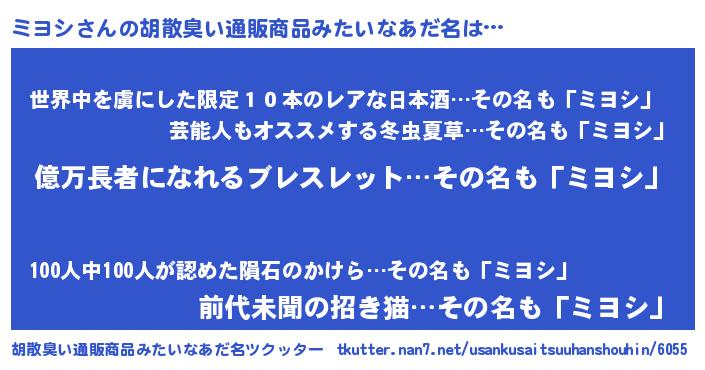 | 意味不明あだ名 | 『ペロリンミヨシ』『永久保存ミヨシ』 |