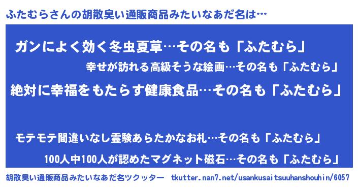 | 男性向けラノベタイトル風あだ名 | 『ふたむらという概念が存在しない退屈な世界 』 |