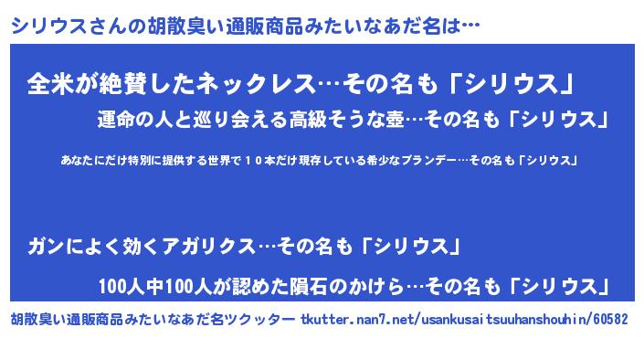 | 意味不明あだ名 | 『住所不定無職シリウス(93歳)』 |