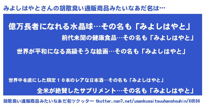 | 肩書あだ名 | 『みよしはやと総理大臣』 |