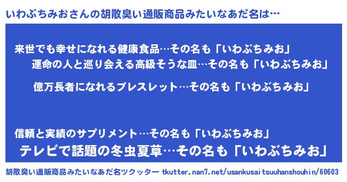 | ヘコむあだ名 | 『いわにー』『いわぶちみお(笑)』 |