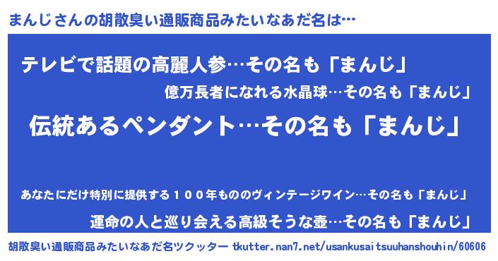 | 意味不明あだ名 | 『とにかく怪しいまんじ』『自称まんじ』 |