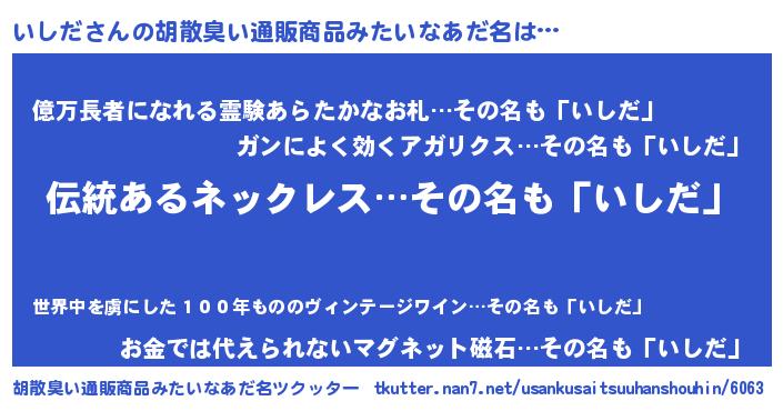 | 意味不明あだ名 | 『とにかく怪しいいしだ』『自称いしだ』 |