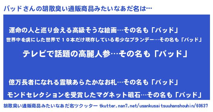 | 女子向けラノベタイトル風あだ名 | 『バッドの玉の輿計画!』『闇のバッド』 |