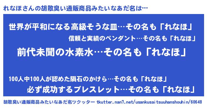 | 意味不明あだ名 | 『永久保存れなほ』『れなほフォーエバー』 |