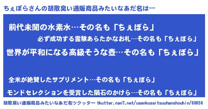 | 意味不明あだ名 | 『ちぇぼらフォーエバー』 |