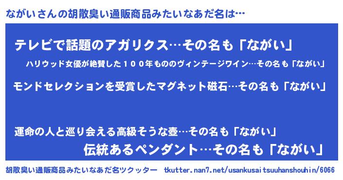 | 男性向けラノベタイトル風あだ名 | 『ノーゲーム・ノーナガイ』 |