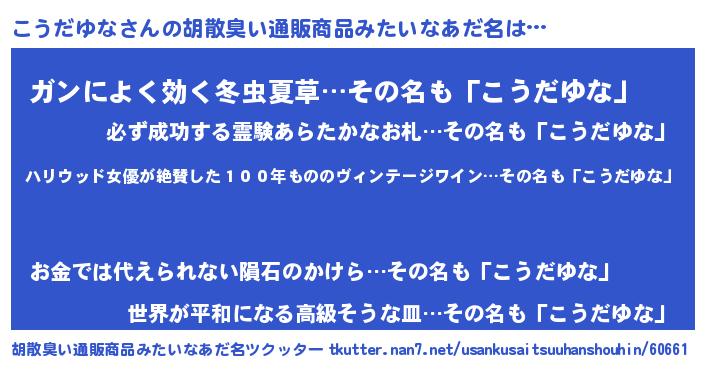 | ヒーロー風カッコイイあだ名 | 『仮面コウダー』『スーパーコウダユナ』 |