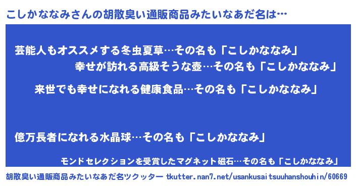 | ヘコむあだ名 | 『こしかななみ(笑)』『酢こんぶ』 |
