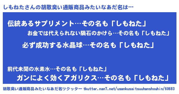 | 意味不明あだ名 | 『ペロリンしもねた』『自称しもねた』 |