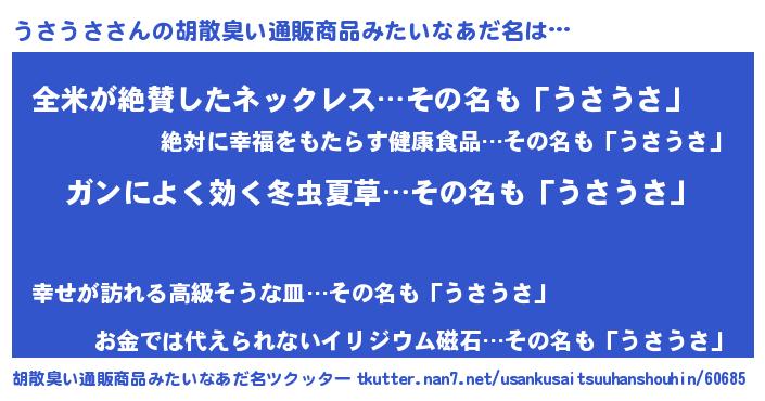 | ヒーロー風カッコイイあだ名 | 『ウルトラ戦士ウサウサ』『天弓騎士ウサ』 |