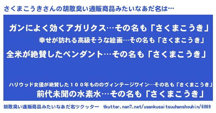 | ヘコむあだ名 | 『さくぷりん』『さくまこうき(笑)』 |