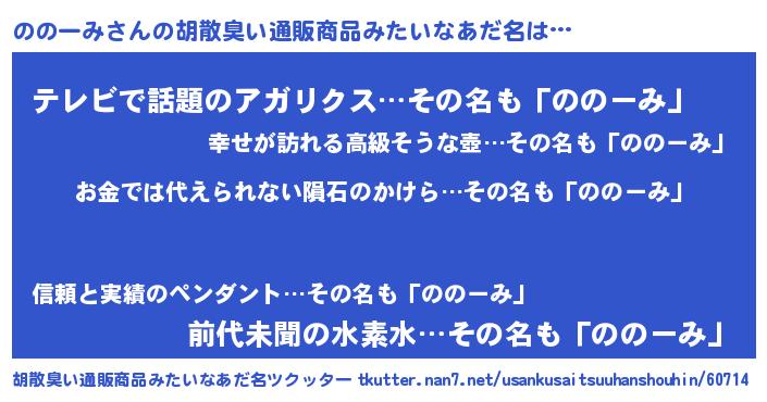 | 男性向けラノベタイトル風あだ名 | 『ノーゲーム・ノーノノーミ』 |