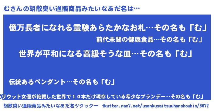 | ヘコむあだ名 | 『なまこ酢』『むっふぃ~』『むっ子』 |
