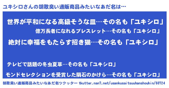 | ヘコむあだ名 | 『ユキシロ(小並感)』『なまこ酢』 |