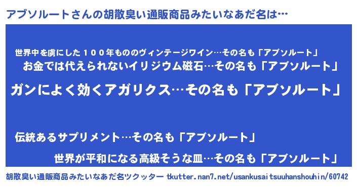 アブソルートさんの胡散臭い通販商品みたいなあだ名をツクッター!