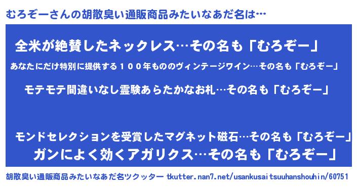 | 意味不明あだ名 | 『ペロリンむろぞー』『自称むろぞー』 |