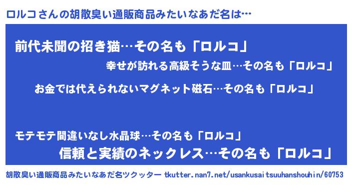 | ヒーロー風カッコイイあだ名 | 『慈愛の使者ロルコ』『ネオロルコ』 |