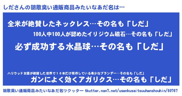 | ヘコむあだ名 | 『しだふぇ~』『しだっぺ』『つくし』 |